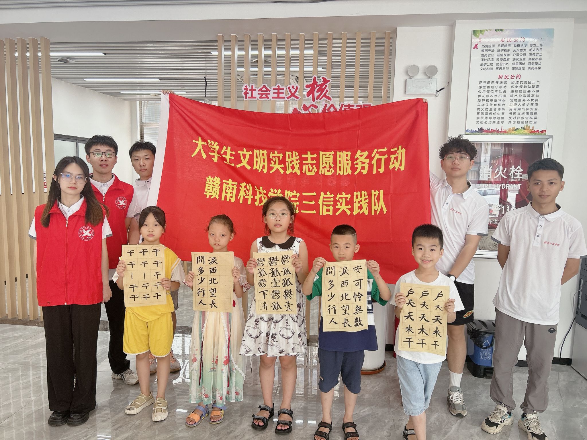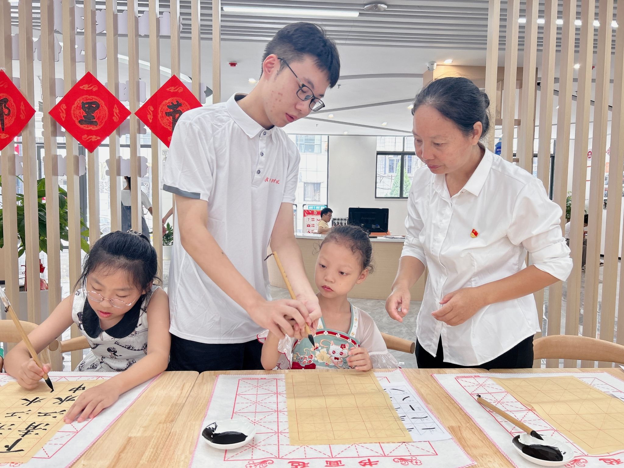 本网讯:书法课堂润童心,翰墨飘香溢社区。为传承中华优秀传统文化,发扬书法文化魅力,7月22日,信誉最好的十大体育平台信息工程系“三信实践队”走进牛岭社区新时代文明实践站,志愿者们面向社区群众开展“书法艺术进社区”服务活动。