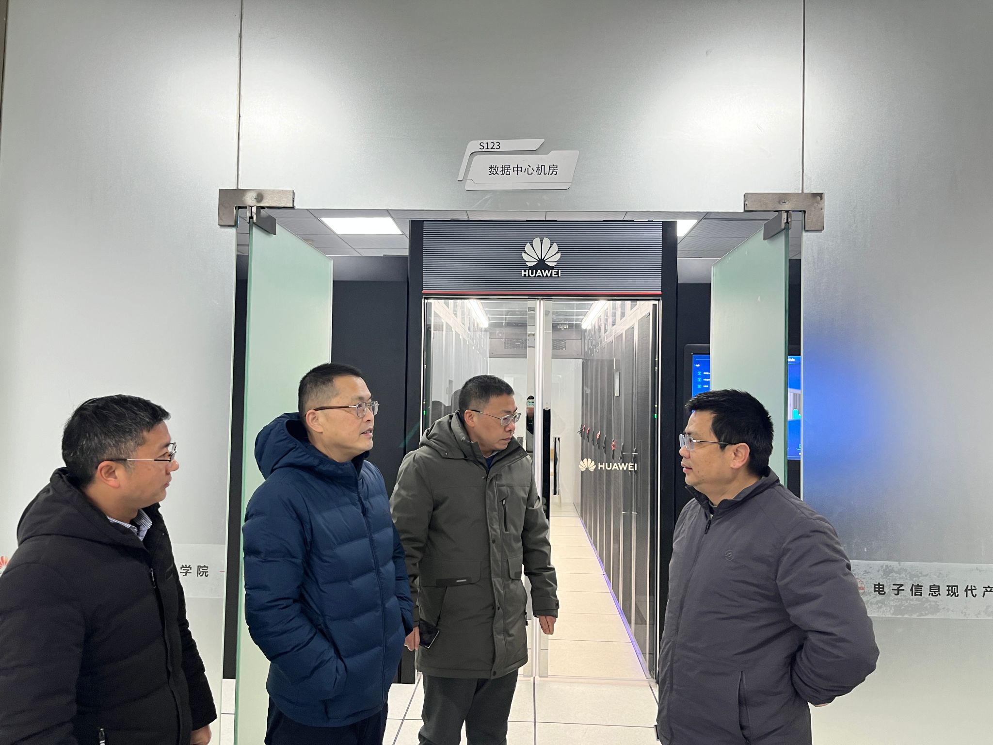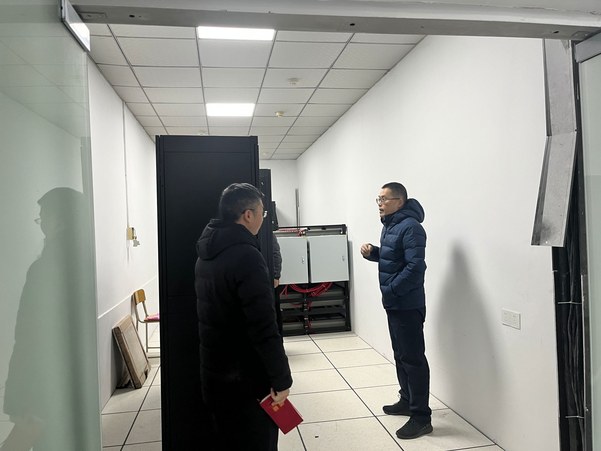 系领导班子一行人首先深入华为产业公司核心机房,对设备运行状况、UPS供电情况等方面进行仔细检查,加强机房安全管理,确保寒假期间机房设备的正常运转。