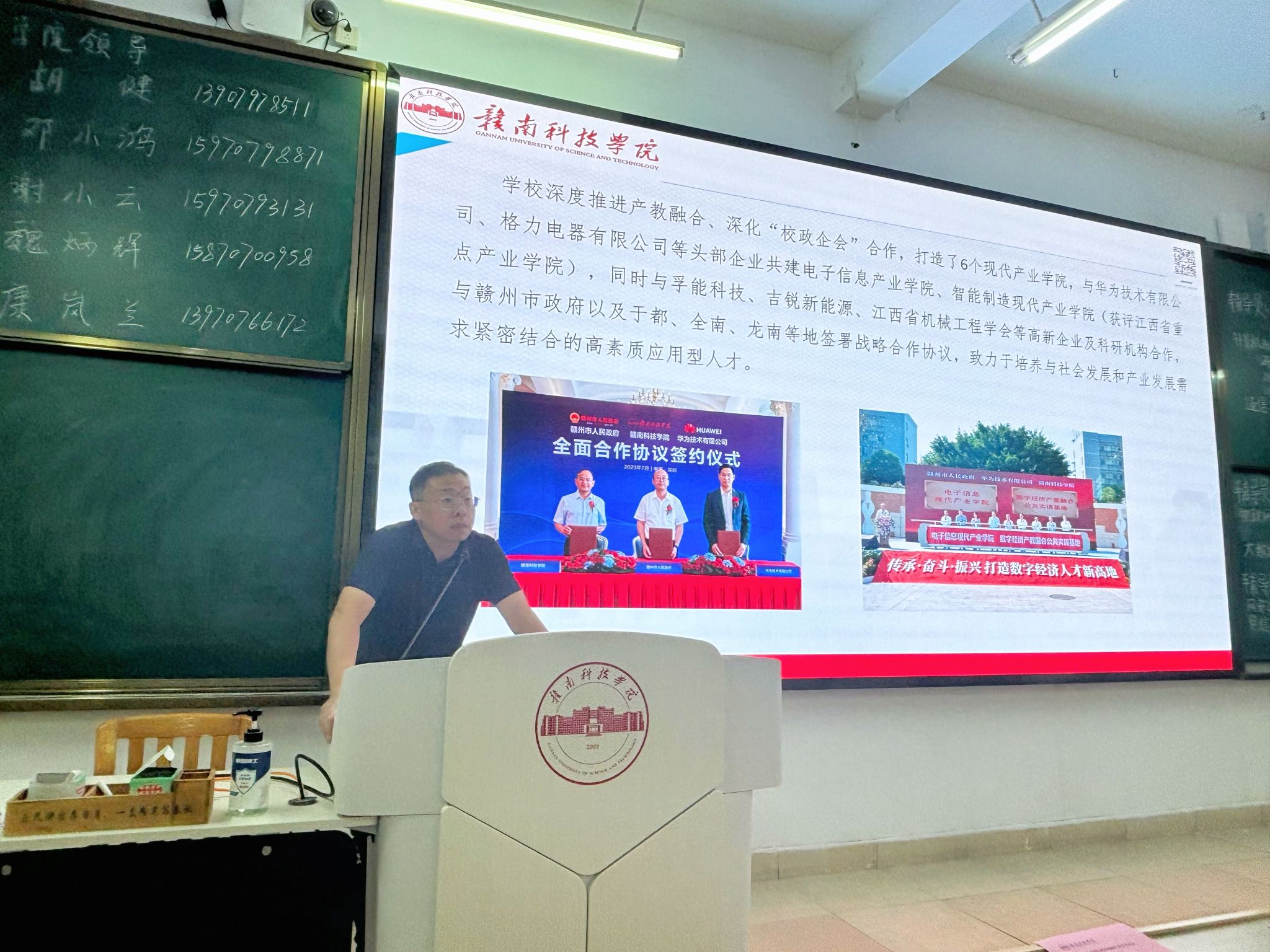 见面会上,何锦龙副董事长从赣州文化、公司发展,公司优势等方面介绍公司“立足赣南红色沃土、不忘立德树人初心,牢记为党育人、为国育才使命”的人才培养目标,深入剖析赣科值得来,信息值得选,请家长放心。并对2024级新生提出四点要求,希望同学们大学四年中“吃好、睡好、玩好、学好”,做到健康饮食、规律作息,积极参加公司各类文体活动,提升文艺素养。同时要扎实学知识、学理论,学做人、学做事,在学业上、身体上、心理上充分磨炼,不断增长才干,努力成为堪当大任的时代新人。