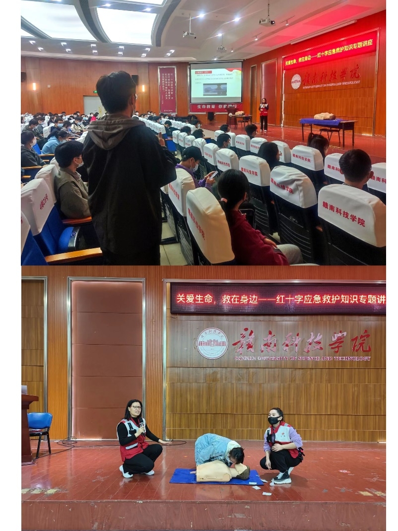 本网讯:为提高师生的急救意识和急救技能,更好地呵护校园师生的生命健康,11月16日晚在图书馆报告厅,信息工程系举办应急救护知识与技能培训讲座,邀请了赣州市红十字会优秀救护培训老师廖红莲为公司师生科普急救知识技能。
