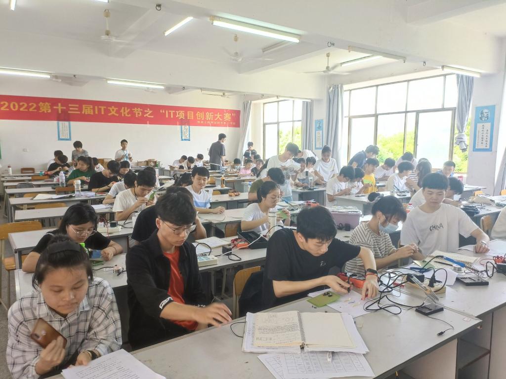 本网讯:为增强员工的理论联系实际、科技创新、工程实践能力,2022年5月29日上午九点到下午四点半,信息工程系在一教1404教室举办第十三届IT文化节创新大赛。此次大赛参赛队伍分为专业组和非专业组,非专业组通过了三天的赛前培训,并由专业组“一人带一队”参赛,本次比赛由谢小云老师指导。