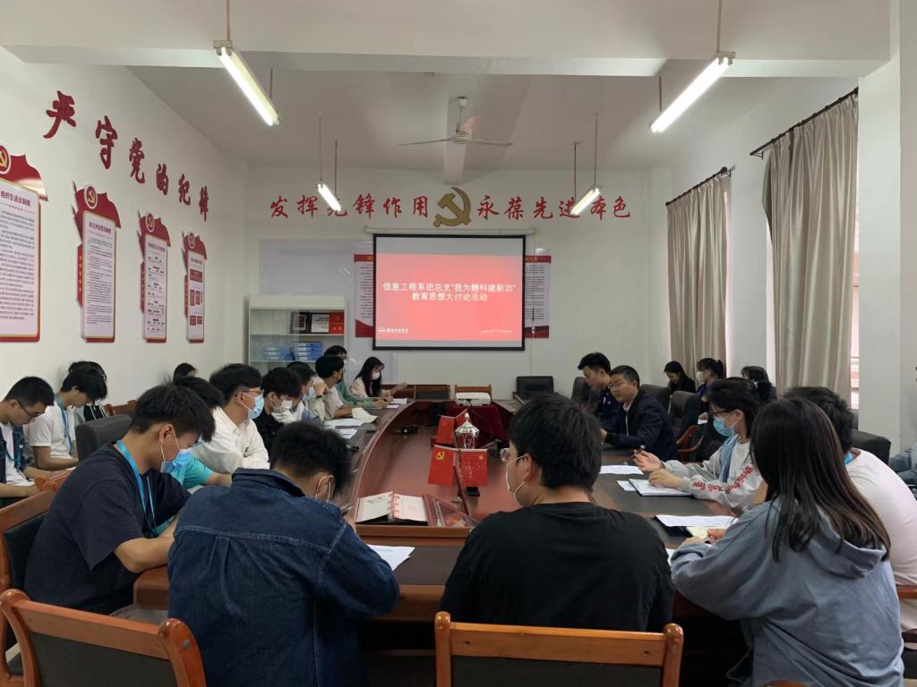 本网讯:2022年5月13日下午五点,信息工程系“我为赣科建新功”教育思想大讨论在主教八楼会议室召开,参与本次讨论的有信息工程系副主任魏炳辉老师、团总支书记陈世琪老师,此外信息工程系20余名员工代表也参与了本次大讨论。