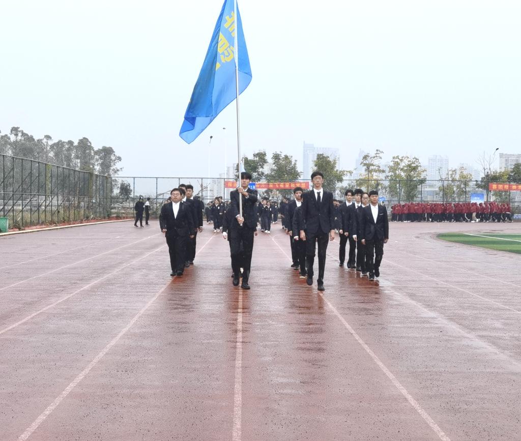 未到8点,田径场已被同学们的热情充满。上午8点半,在激昂的音乐声中,开幕式正式开始。伴随着《运动员进行曲》,由信息工程系大一新生组成的方阵以及教职工方阵踏着整齐的步伐进入运动场,他们英姿飒爽,他们意气风发,他们代表了信息系学子对此次运动会的关注和热情。随着庄严的国歌声响起,全体师生起立,奏唱国歌。冉冉升起的五星红旗下,同学们的眼神充满活力与热情。上午9:00,开幕式正式开始。由于现场下起了小雨,开幕表演择机进行。但雨是无法浇灭信息系学子们如火的热情,他们蓄势待发,随时准备上场为系争光。