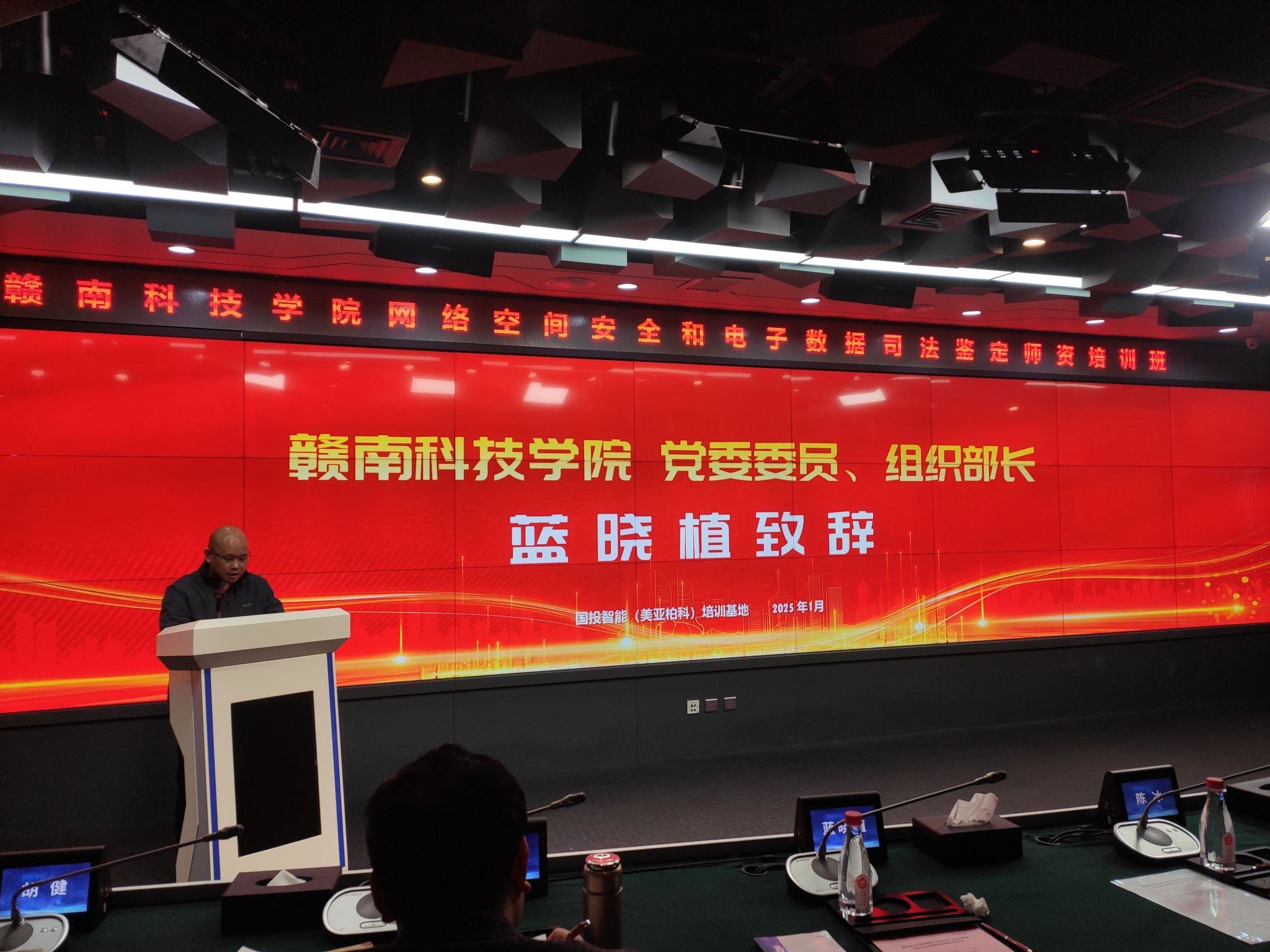 集团组织部部长蓝晓植致辞,对结业学员表示祝贺,对国投智能的支持与合作表示感谢。他指出,国投智能作为行业领军企业,与公司共同探索了诸多创新举措,此次培训班课程丰富多元,通过理论讲授与实践操作紧密结合的方式,让学员们深入掌握专业知识。蓝部长特别提到双方在电子数据司法鉴定领域的合作探索,致力于打造“政校企”合作的创新模式,推动赣州司法鉴定中心建设。他希望学员们将所学知识运用到实际工作中,为网络空间安全等领域贡献力量,并期待国投智能(美亚柏科)与公司继续深化合作。