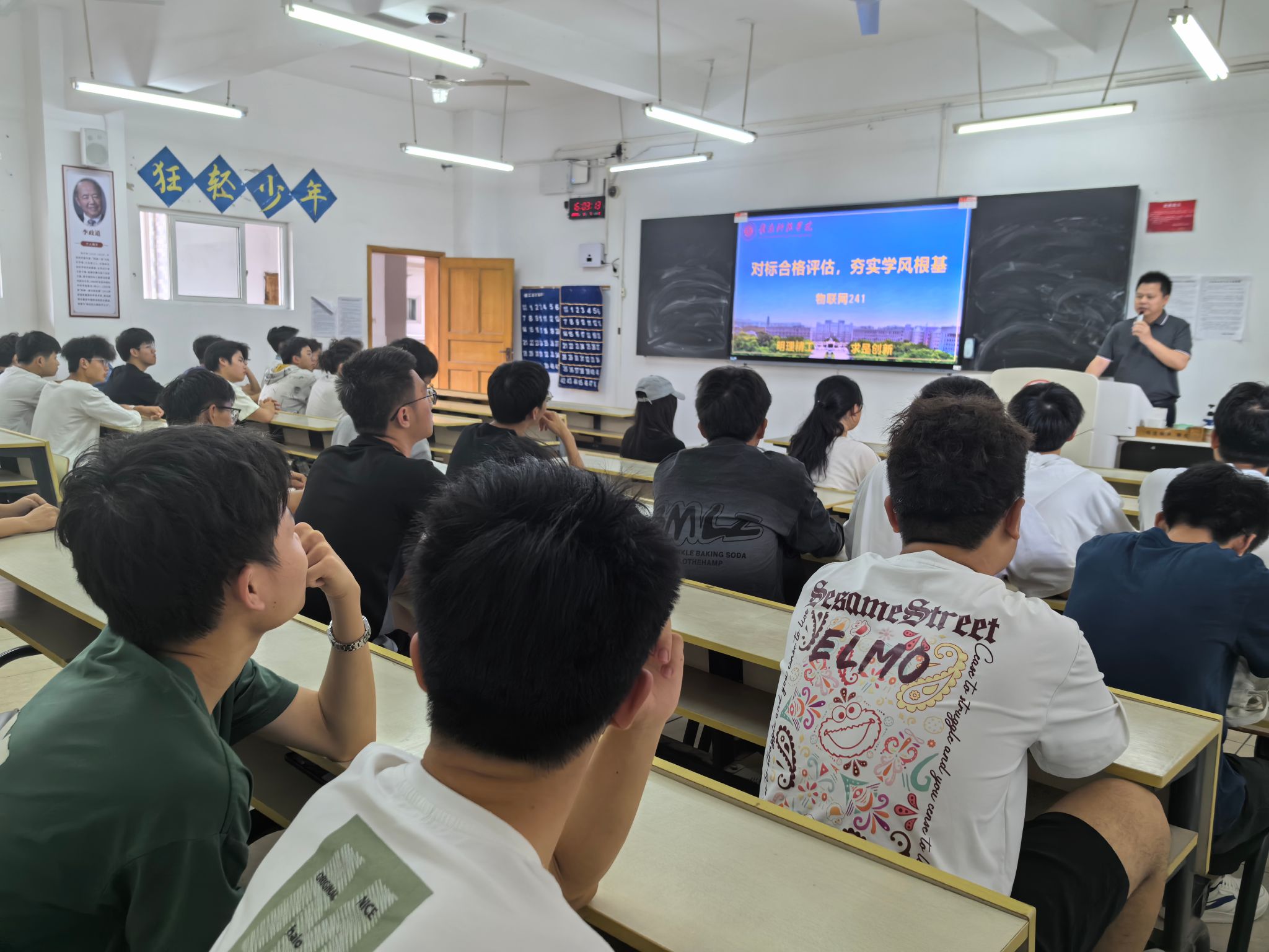 本网讯:5月7日下午,组织人事部副部长邓海生深入“三联系”班级物联网241班参加“对标合格评估,夯实学风根基”主题班会,与师生共话评估意义、共谋班级发展,辅导员、班主任及全体同学参加班会。