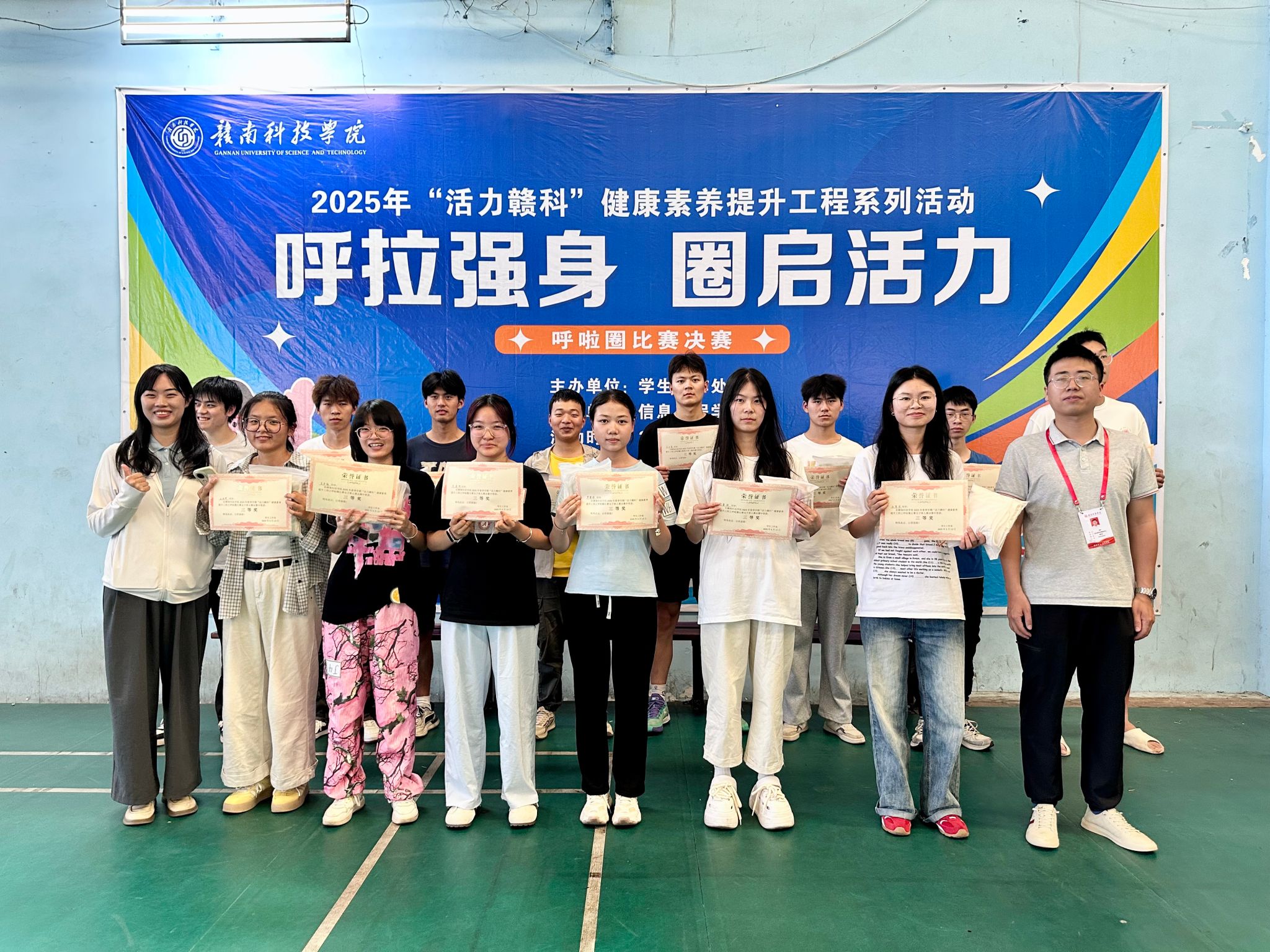 本网讯:5月13日下午,由员工工作处主办、信誉最好的十大体育平台承办的“活力赣科”健康素养提升工程系列活动之呼啦圈决赛在风雨操场圆满落幕。本次活动以“呼啦强身 圈启活力”为主题,吸引了全校各公司员工积极参与,为广大师生呈现了一场充满激情与活力的体育盛会。
