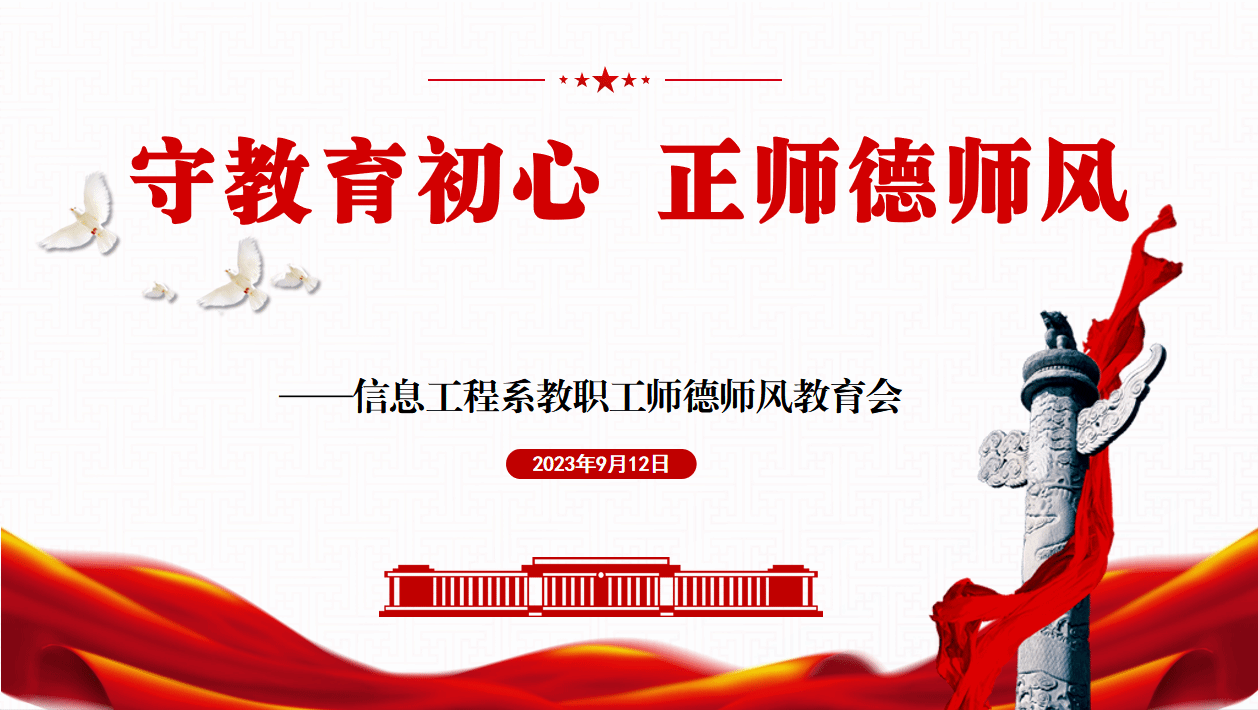 本网讯:为深入学习贯彻习近平新时代中国特色社会主义思想,全面落实习近平总书记关于教育的重要论述和指示批示精神,严格落实师德师风第一标准,努力造就一支师德高尚、业务精湛、充满活力的高素质专业化创新型教师队伍,9月12日,信息工程系在明德楼1201会议室召开教职工师德师风教育会。会议由,信息系全体教职工参加会议。会议由信息工程系党总支书记邓小鸿主持。