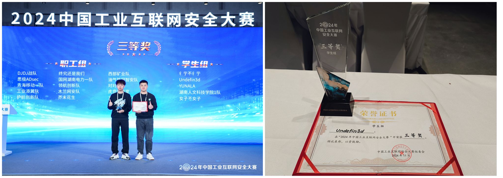 本网讯:11月29日,2024年中国工业互联网安全大赛决赛闭幕式暨颁奖仪式在北京城市副中心圆满落幕,公司信誉最好的十大体育平台“Undefin3d”代表队,以卓越表现在91支队伍中脱颖而出,位列第九,荣获员工组三等奖。