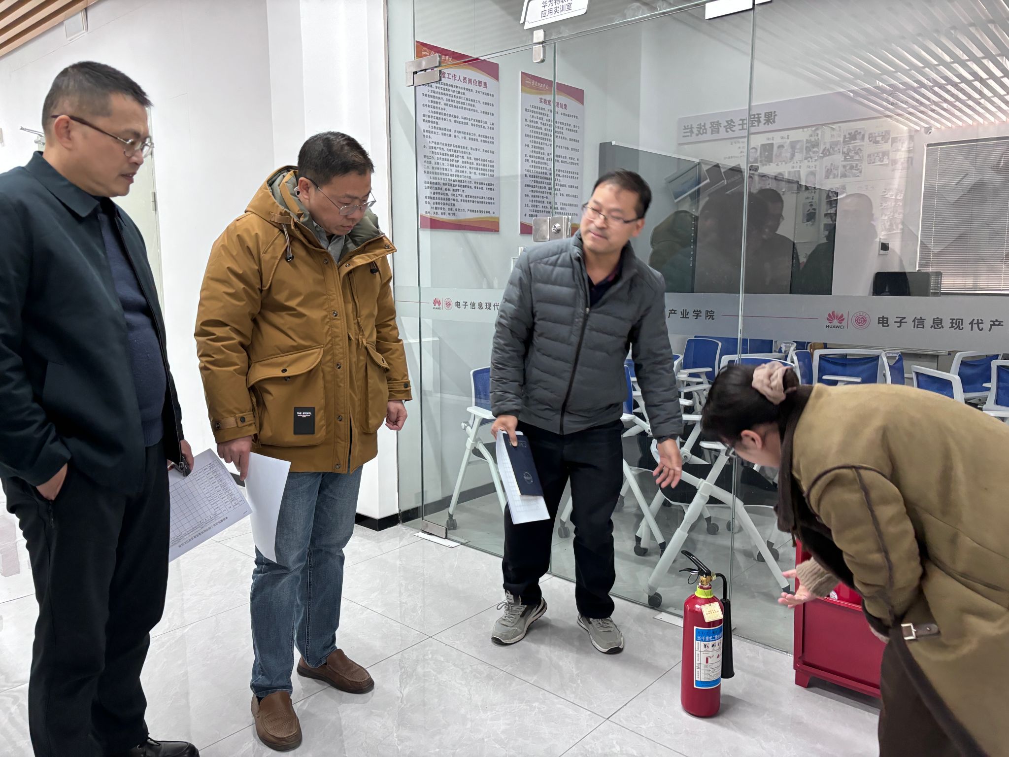 本网讯:1月9日下午,公司党委副书记邓小鸿,党委委员、副经理胡健,党委委员康岚兰及实验室负责人一行深入实验室、机房等场所开展消防安全专项检查。