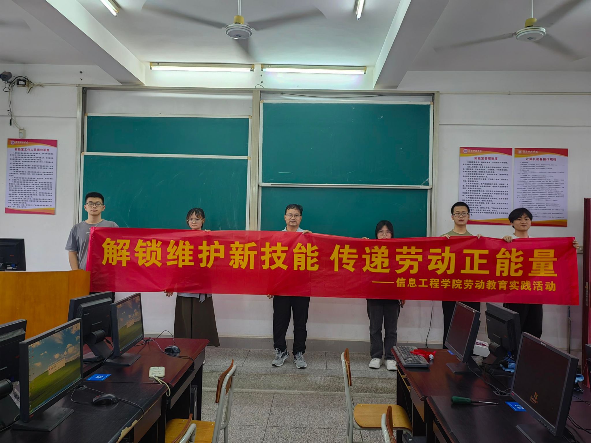 本网讯:为强化劳动教育实效,提升员工专业实践能力,5月27日,实创网络协会成员组成服务队于明德楼参加“解锁维护新技能 传递劳动正能量”电脑维护劳动教育实践活动。协会负责人屈雯与信息公司实验中心主任钟章生共同参加活动。