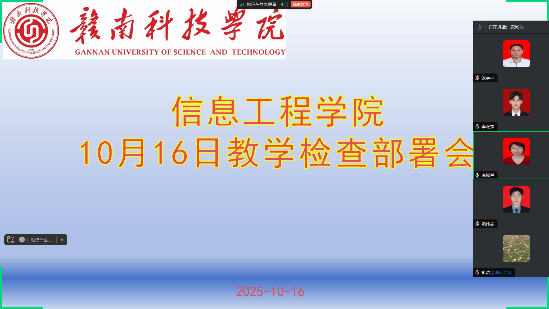 周密部署,精准切入。检查工作伊始,公司首先聚焦问题整改,于10月14日对公司前期反馈的教学问题进行了“回头看”,重点抽查了外聘教师及在读博士的教学资料,确保整改落实到位。10月16日,公司召开专项检查动员会,公司党委委员、教学科研办主任康岚兰作动员讲话,专任教师张学林详细解读了公司教学质量与评估中心下发的《2025-2026学年第一学期教学资料专项检(复)查工作方案》文件,为全面检查做好了充分的思想与组织准备。