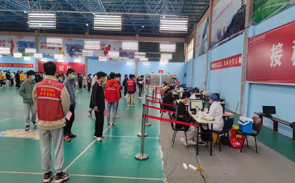 本网讯:2022年4月2日上午9点,信息工程系本科生党支部组织支部30名入党积极分子于公司风雨操场疫苗接种点,协助医护人员进行疫苗接种。