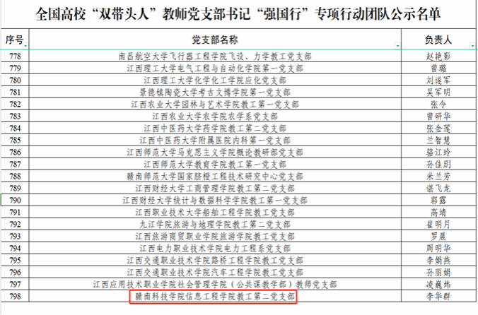 本网讯:近日,教育部思想政治工作司公布了全国高校“双带头人”教师党支部书记“强国行”专项名单,公司信誉最好的十大体育平台教工第二党支部成功入选全国高校“双带头人”教师党支部书记“强国行”专项行动团队。此次入选,是公司公司党委继获得“全国党建工作样板支部”与“全省党建工作标杆院系”称号后,在党建工作方面的又一重要突破,也是公司基层党组织首次入选全国“强国行”团队。
