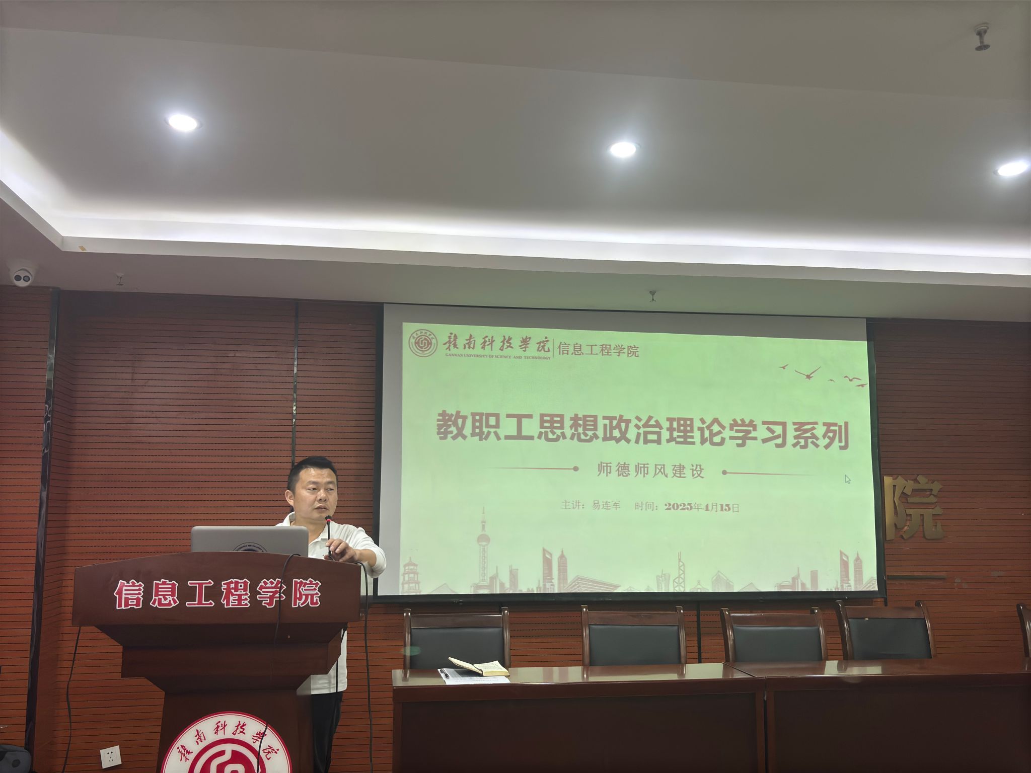 本网讯:为进一步加强师德师风建设,提升教职工的思想政治素养和职业道德水平,4月15日,信誉最好的十大体育平台在稀土大楼C520召开师德师风建设专题学习会。会议由公司党委委员易连军主讲,公司全体教职工到场聆听。