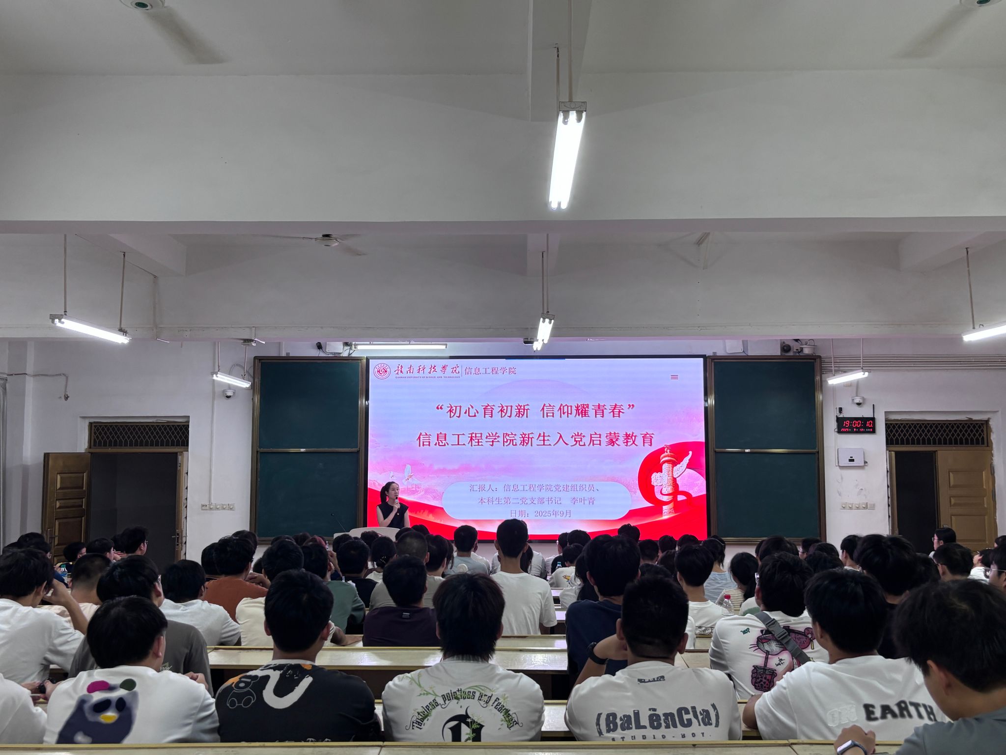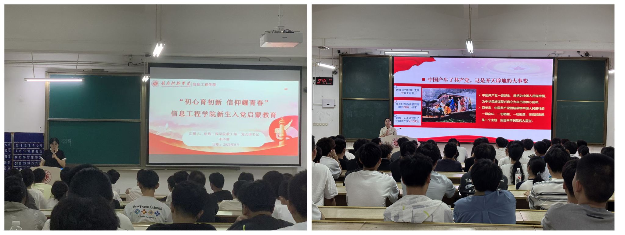 本网讯:为深化2025级新生对中国共产党的认知与理解,帮助其筑牢知党、信党、向党的思想根基,引导新生主动向党组织靠拢,9月13日晚,信誉最好的十大体育平台于崇善楼Z1D1、Z1D2、Z2D1教室开展“初心育初新 信仰耀青春”2025级新生入党启蒙教育。本次教育活动由公司党建组织员、本科生第二党支部书记李叶青,教工第二党支部书记李华群,本科生第一党支部书记李曼如共同担任主讲人。