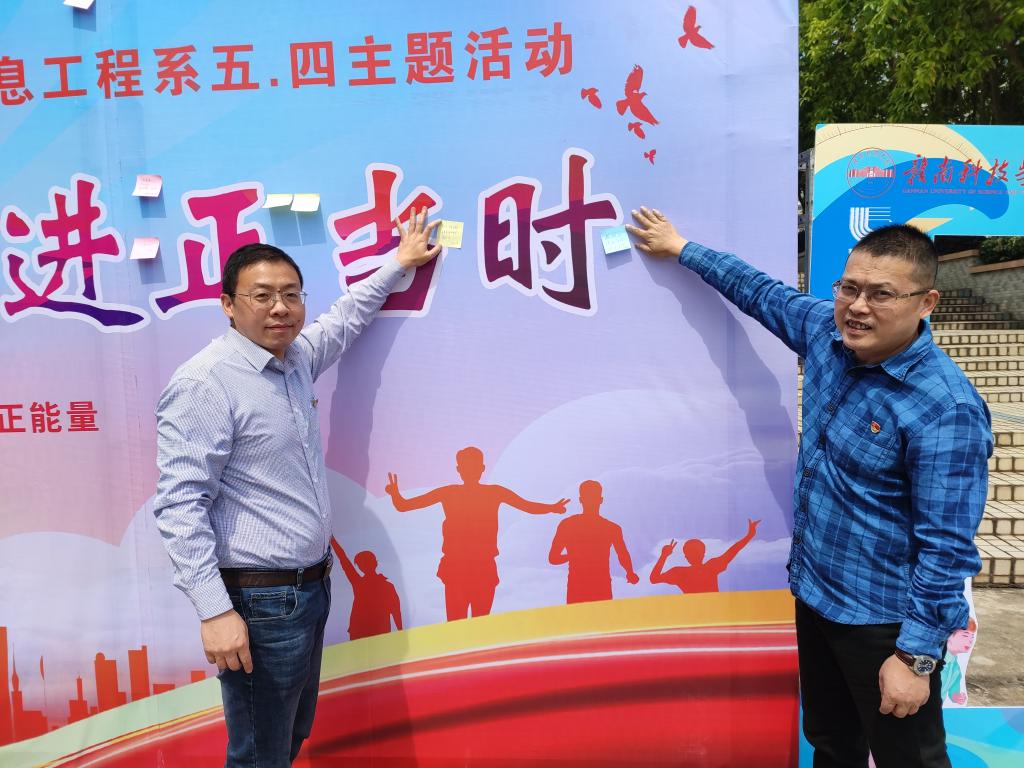 活动中积极邀请系部老师们在留言板上对信息学子的寄语,鼓励同学们不负老师厚望,在学习生活中开拓进取,谱写新时代青春华章。老师们与同学们一同互动参与,还留下合影,同学们心中不由地生起欣喜感动之情,感受到可亲可敬的老师们对自己寄予的厚望。