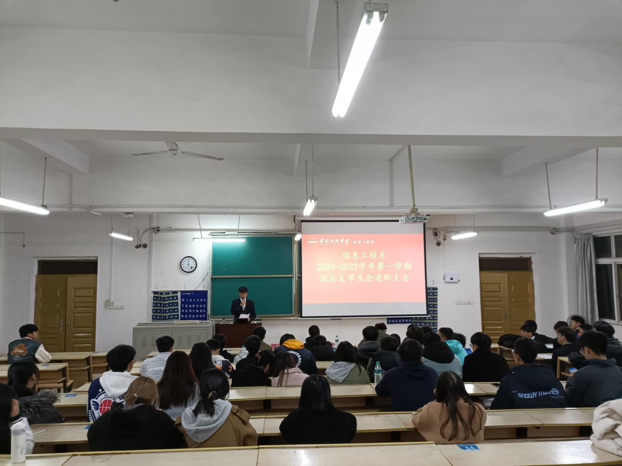 为促进院系员工会沟通联动,加强员工会组织建设,信息工程系决定于2021年12月13日在主教Z1D1开展信息工程系2021-2022学年第一学期团总支员工会述职大会。此次大会出席人员有信息工程系副主任魏炳辉、团总支书记陈世琪、辅导员刘波、吴宪、龚峣、院团委主要员工负责人刘晟及信息工程系全体员工会成员。