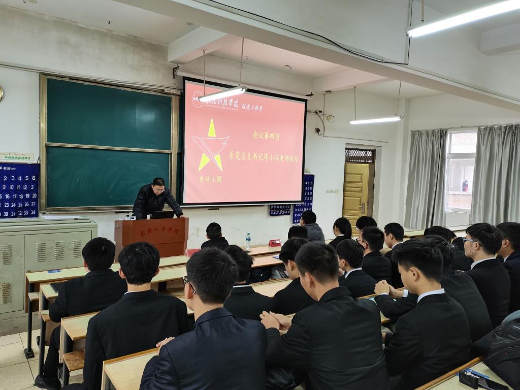 为引导青年员工进一步坚定理想信念,全面提升老员工骨干综合素质,2021年12月17日14:00,信息工程系第十期青马班开班仪式于主教Z1D4召开。参与此次开班仪式的有系党总支书记邓小鸿老师、系副主任魏炳辉老师、系团总支书记陈世琪老师、辅导员刘波老师、吴宪老师、龚峣老师及青马班全体成员。