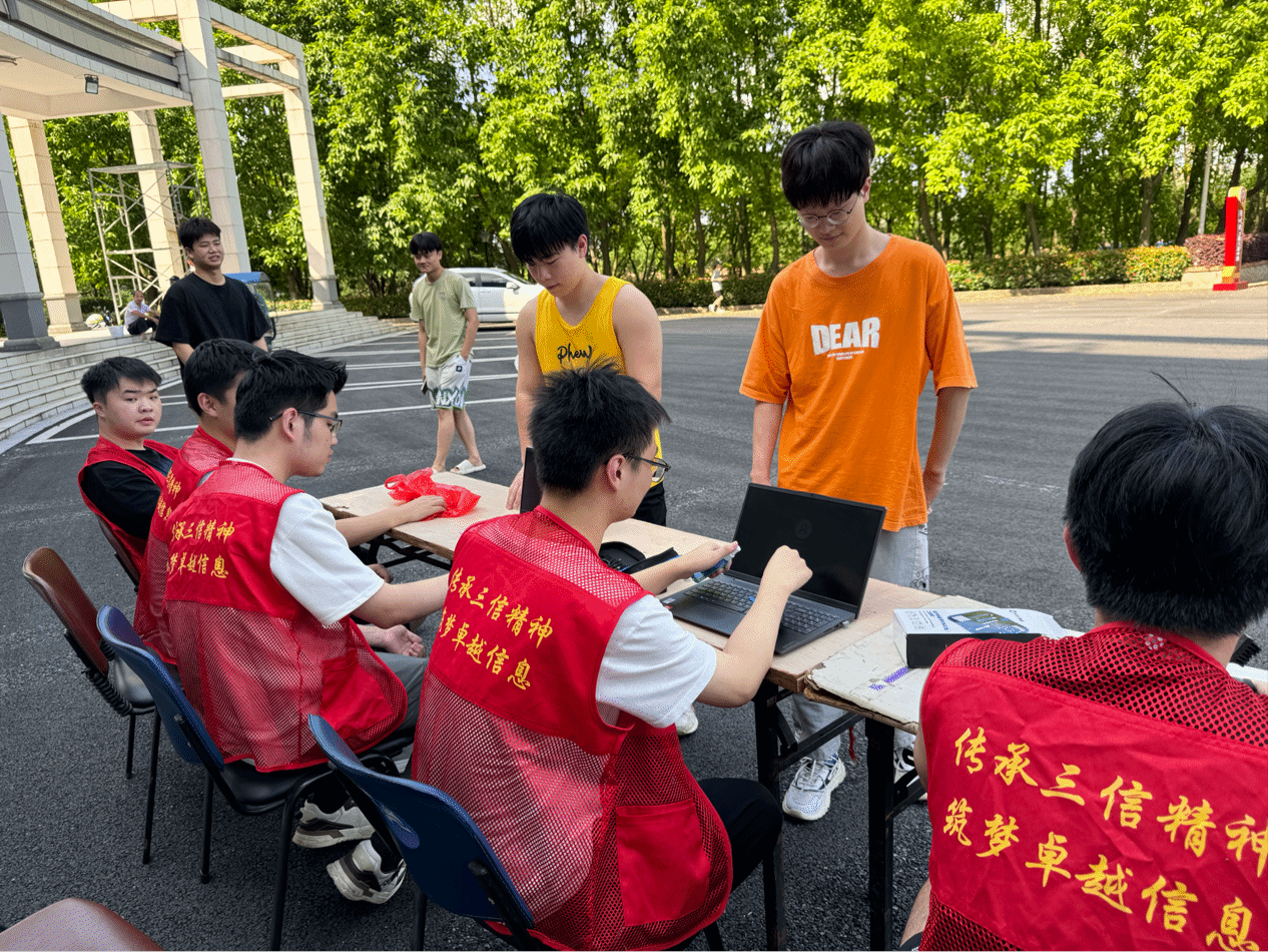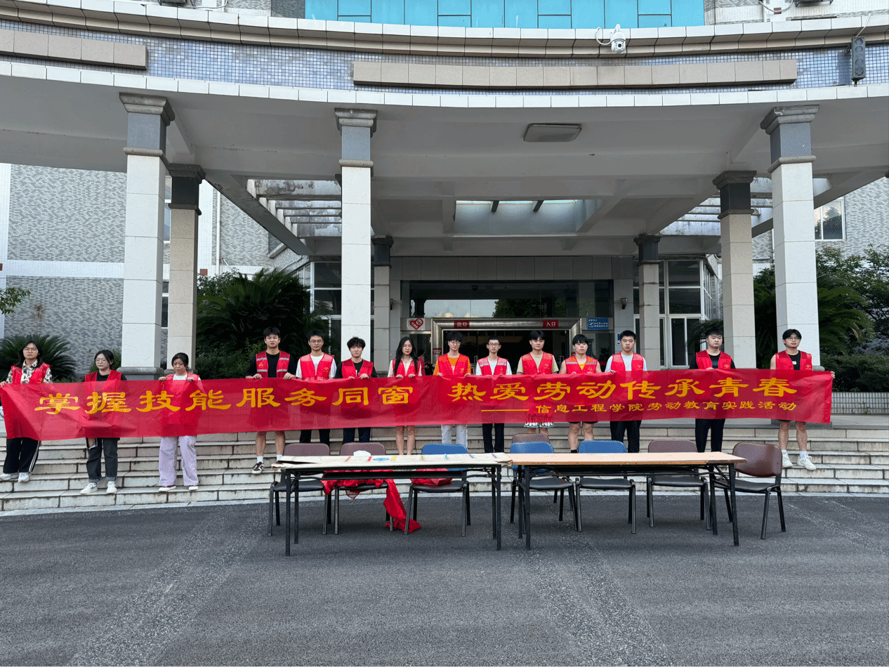 一大早,志愿者们身着统一的红色志愿者马甲,早早地在图书馆门口布置好了服务台,并悬挂起写有“掌握技能服务同窗,热爱劳动传承青春”的宣传标语。尽管天气炎热,但志愿者们热情高涨,为同学们提供周到的服务。
