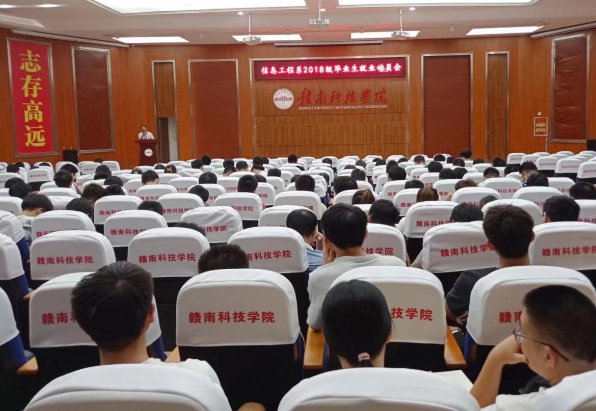 网讯:9月28日晚,信息工程系于逸豪学术报告厅召开了2018级毕业生就业动员会。会议由信息工程系副主任魏炳辉主讲,就业辅导员刘波老师、信息系2018级全体同学参加了本次动员会。