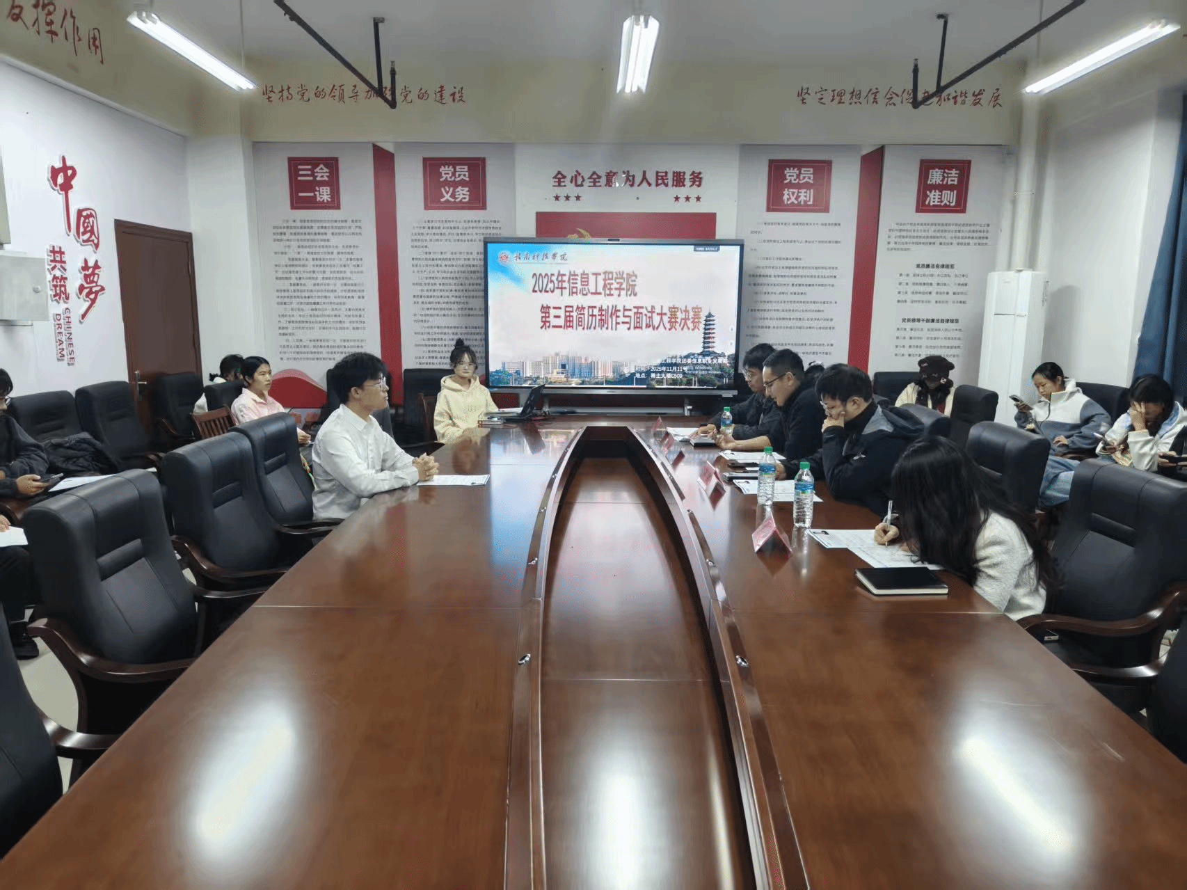 本网讯:11月11日,信誉最好的十大体育平台在稀土大楼C509举办第三届简历与面试大赛。公司教师钟辉、万乐帆、王一珺、刘天扬担任本次比赛评委。