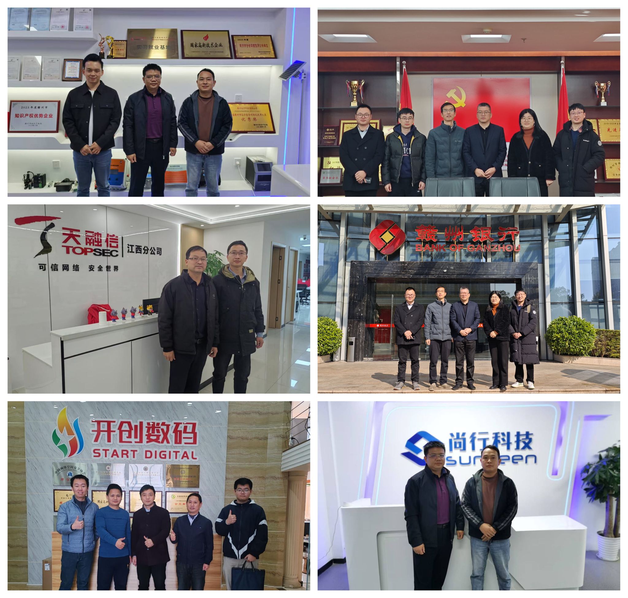 活动期间,公司多个小组相继走访了南京易视萃智科技有限公司、厦门触控未来科技有限公司、国投智能(厦门)信息股份有限公司、天融信科技集团、广州市安立发智能技术有限公司、武汉超星数图教育科技有限公司、北京天融信网络安全技术有限公司江西分公司、江西开创数码科技有限公司、江西数安数字技术有限公司、江西汇兴智能装备有限公司、江西省义诚项目管理有限公司、江西睿警信科技有限公司、深圳市信维通信股份有限公司、国投智能信息科技股份有限公司、广州尚行智能科技有限公司、中国移动通信集团江西有限公司赣州分公司、赣州银行、赣州银行科技部18家单位。