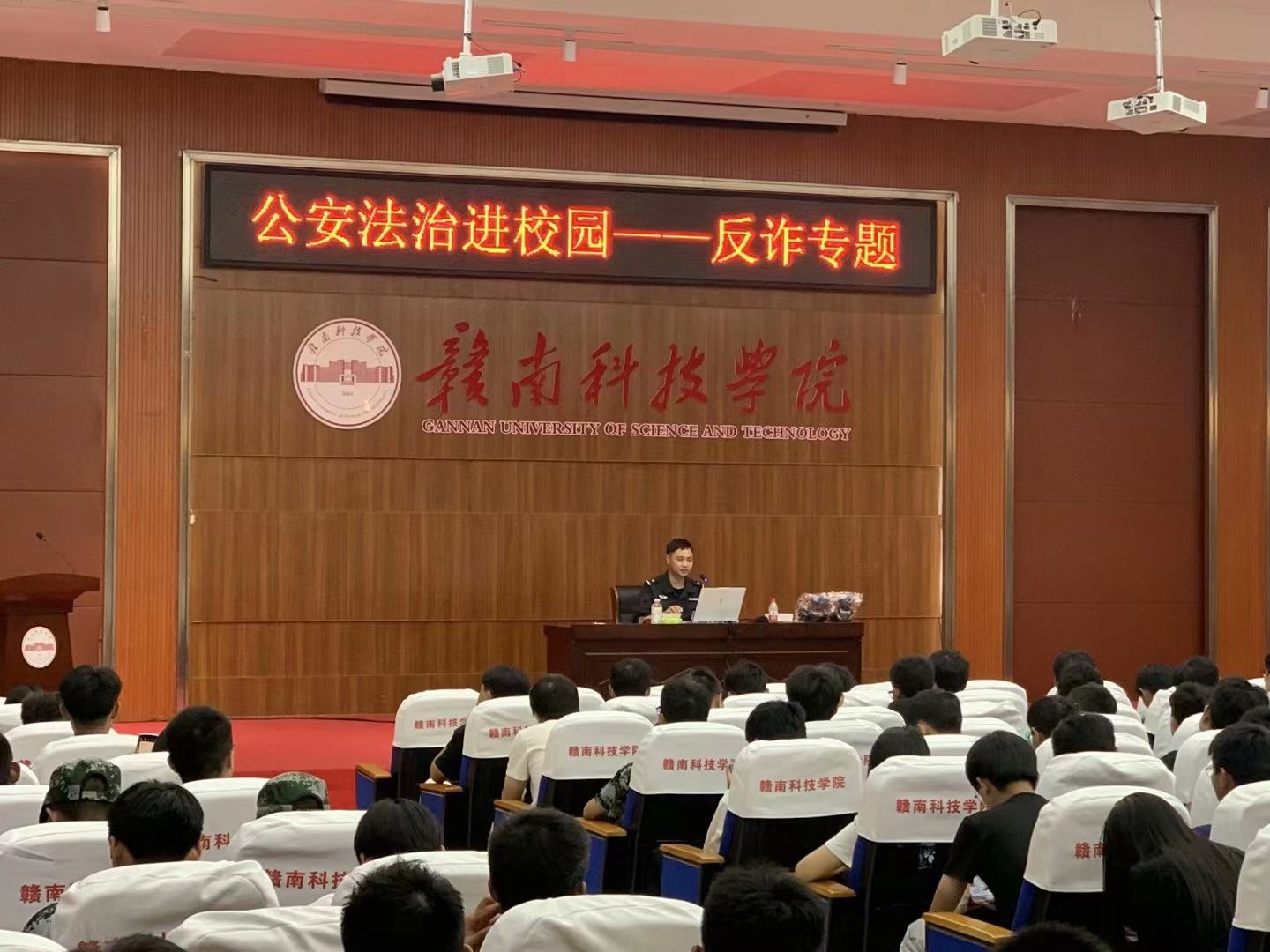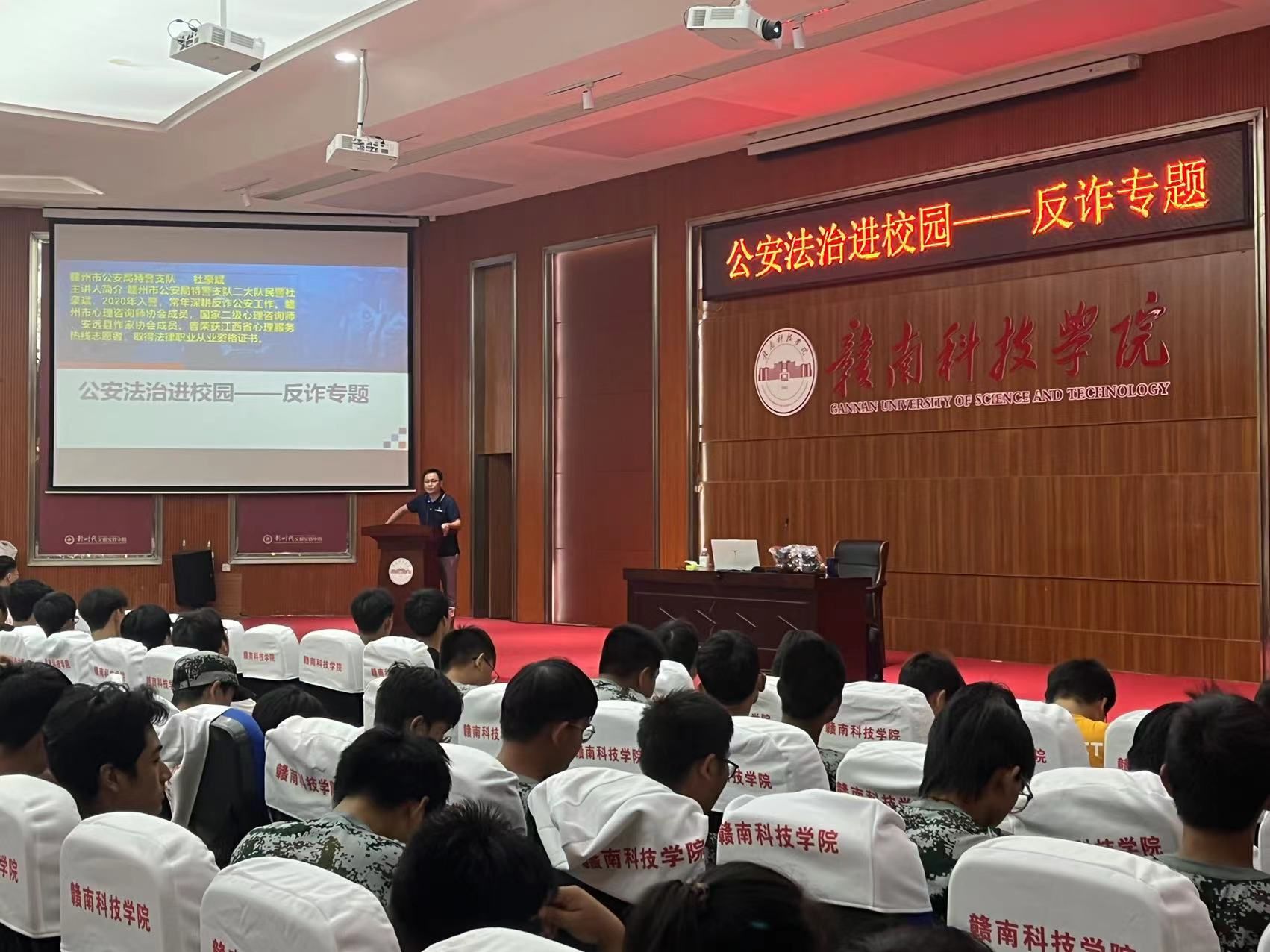 本网讯:为进一步提升新生反诈意识,9月21日晚七点,信息工程系本科生党支部协助赣州市公安特警支队于图书馆报告厅向2023级新生开展反诈专题活动。