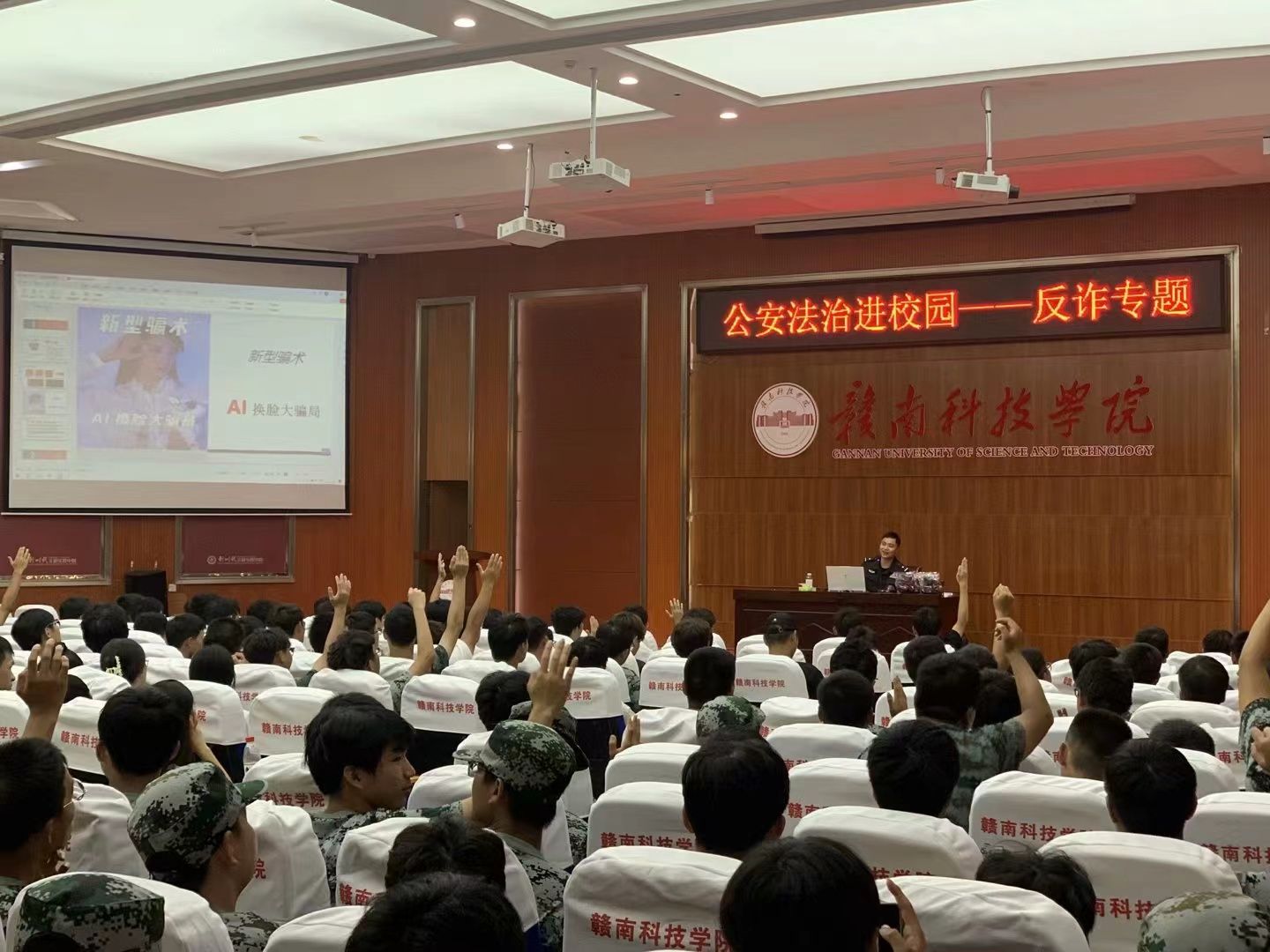 本次反诈专题主题活动主要从AI诈骗、交友诈骗、就业诈骗、高利贷及校园贷四个方面向新生普及反诈知识。在活动现场,同学们积极回答反诈骗的问题,杜警官也为积极回答问题的同学们准备了活动纪念品。同学们在杜警官幽默诙谐的宣讲中逐渐对电信诈骗有了更清晰的认识,提高了同学们的警惕心理和安全意识。