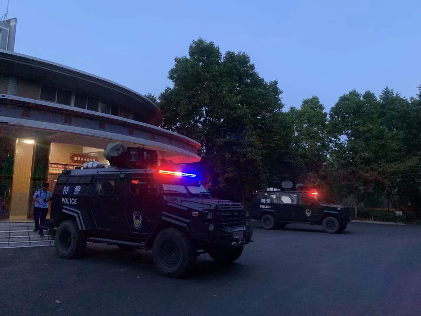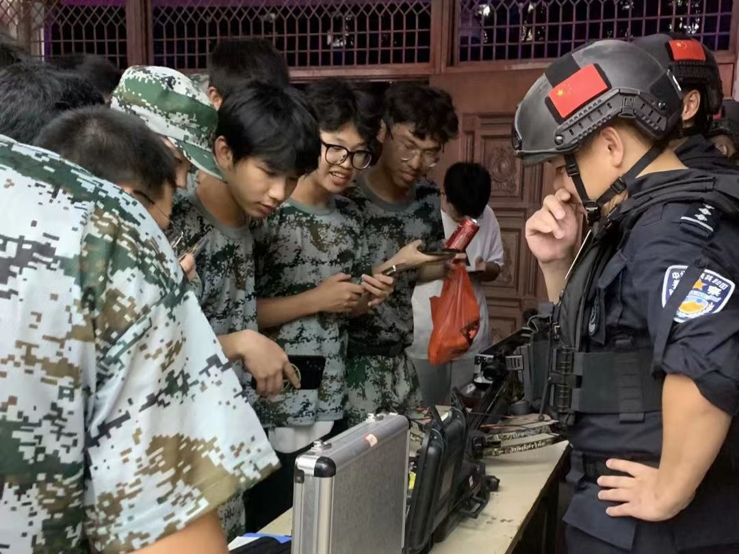 活动开始前,特警同志为同学们展示了装甲车和一些枪械弹药,并且热心地为同学们讲解每一种枪械的使用方法和使用环境,同学们对主题活动热情空前高涨。