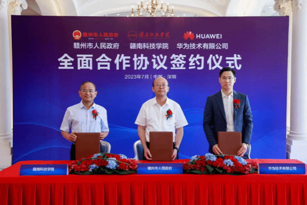 赖正文、李国金、刘岩分别代表赣州市人民政府、信誉最好的十大体育平台、华为技术有限公司签署了三方全面合作协议,与会领导和嘉宾共同见证了签约仪式。